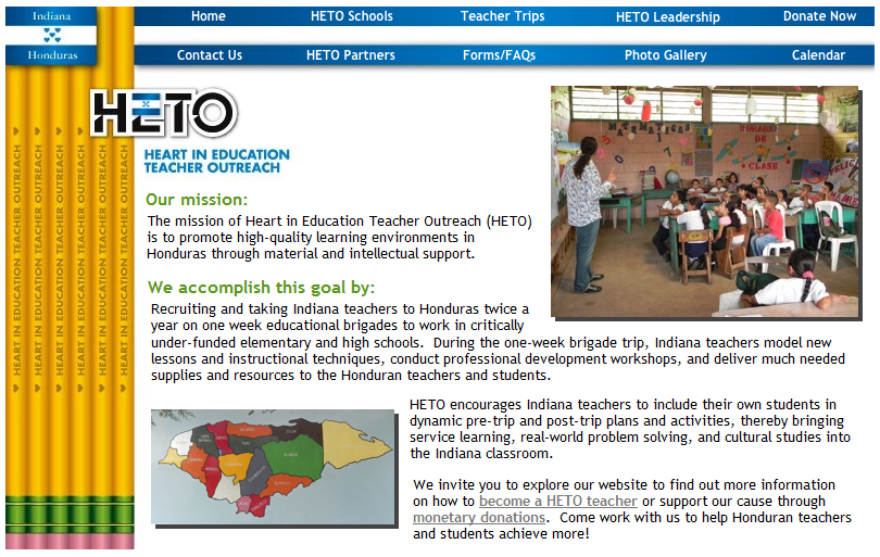 HETO’s mission is to promote high-quality learning environments in Honduras through material and intellectual support. They accomplish this by recruiting Indiana teachers to participate in week-long trips to Honduras. While in Honduras the teachers model new lessons and instructional techniques, conduct professional development workshops, and deliver much-needed supplies and resources to the Honduran teachers and students. The trips really focus on helping the Honduran teachers get the tools they need to effectively educate their students but, as group founder Peggy Esselman explained to us, the experiences the Indiana teachers return with is really important too. It’s all about information sharing.