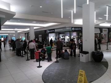 I also couldn’t let a little thing like pre-ordering stop me from checking out the opening of the Surface kiosk at the Fashion Mall at Keystone at the Crossing. Even my daughter was getting in on the action when my family was at the mall the day before. When my friend and I arrived at the mall in the morning we pushed our way through the short line of Apple devotees waiting for the Apple Store to open and made our way to the kiosk where we witnessed something beautiful… a line… for a Microsoft product!