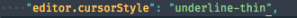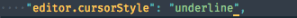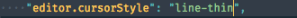 By default, the text cursor is rendered as a solid vertical bar but there are plenty of other styles in other editors. In VS Code we can change the editor.cursorStyle setting to adjust the cursor to something else that we may be more accustomed to, be it a vertical line, underscore, or even a box.